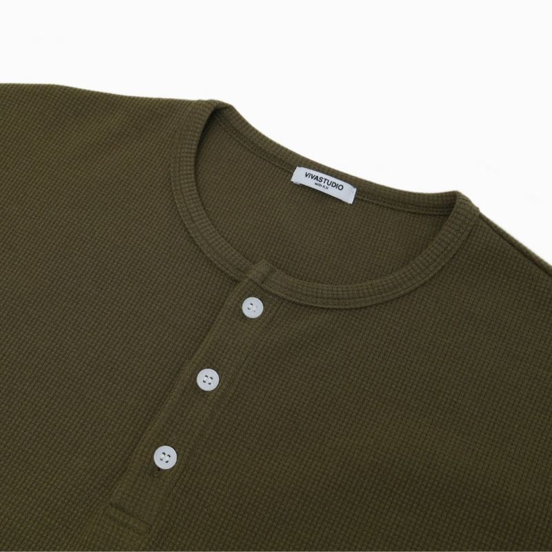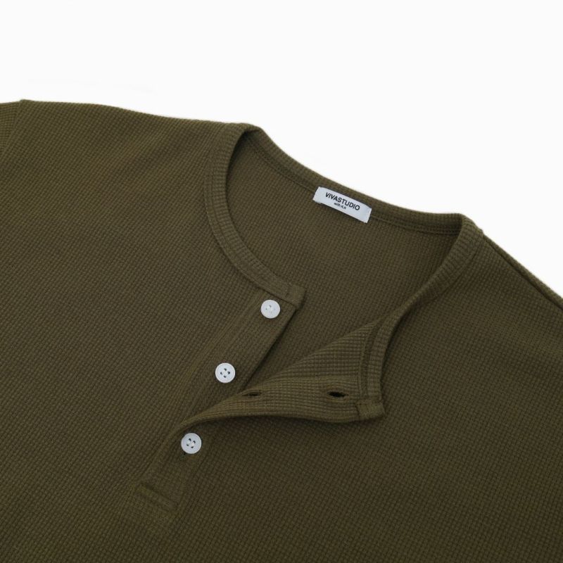 Henley Neck T-shirt(Khaki)