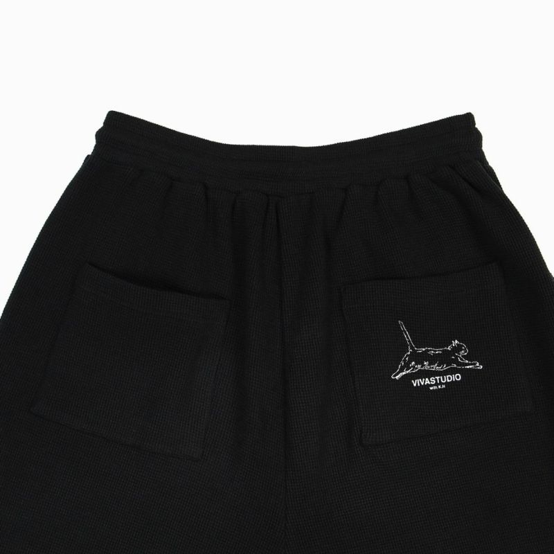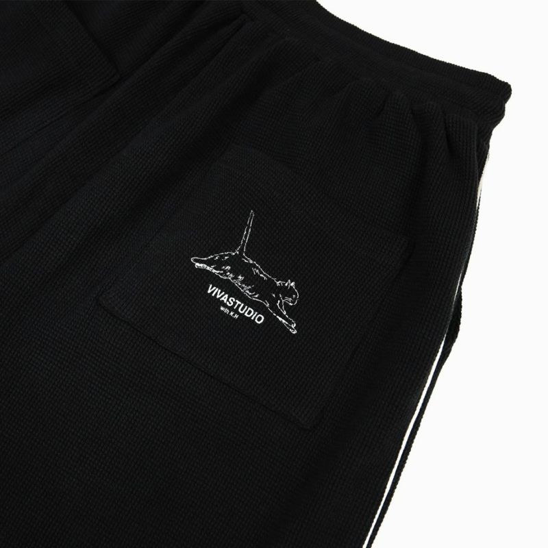 後ろポケットには、樋口幸平の愛猫・モモちゃんをモチーフにした自由に駆ける猫のグラフィックプリントを施し、後ろ姿にも遊び心を。