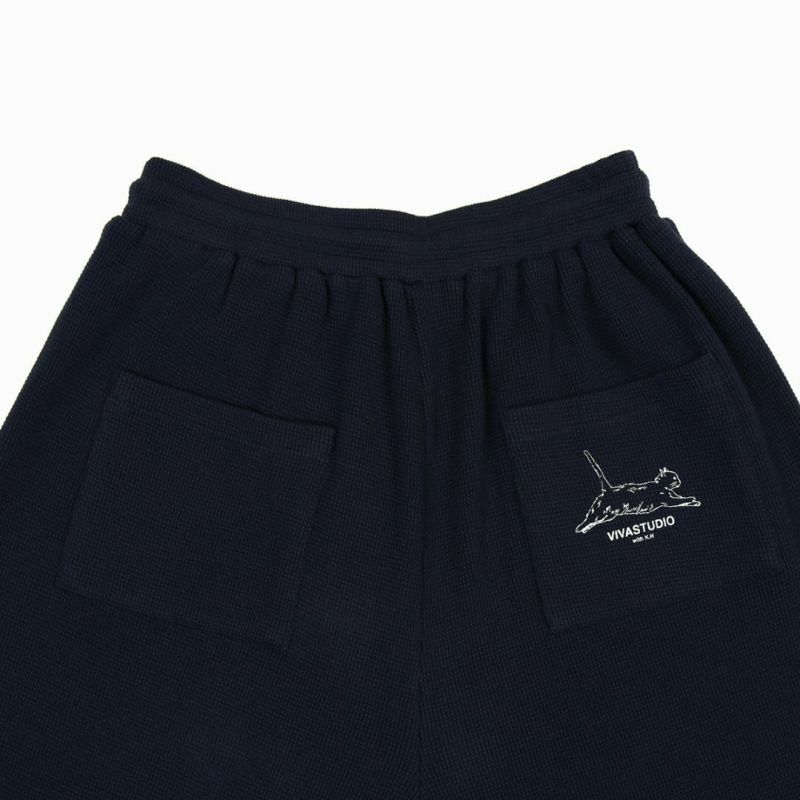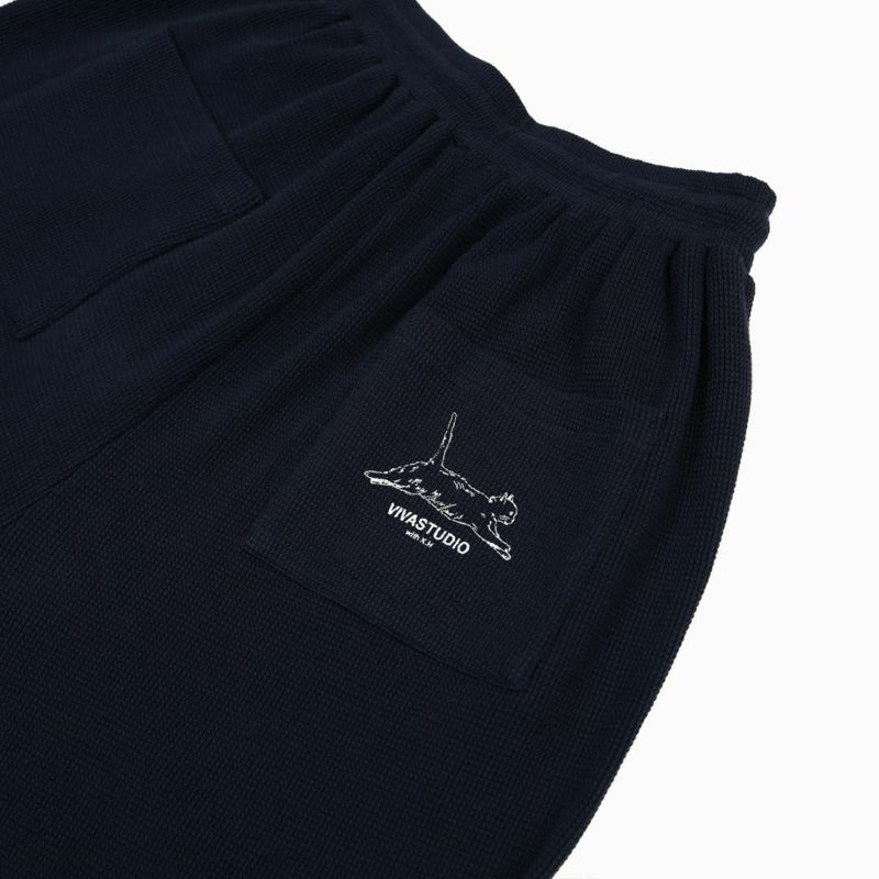後ろポケットには、樋口幸平の愛猫・モモちゃんをモチーフにした自由に駆ける猫のグラフィックプリントを施し、後ろ姿にも遊び心を。