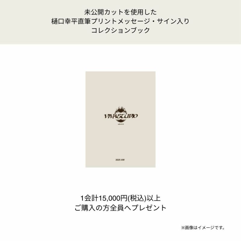 2.《先行期間限定》15,000円以上ご購入の方に、未公開カットを使用した樋口幸平直筆プリントメッセージ・サイン入りコレクションブックをプレゼント